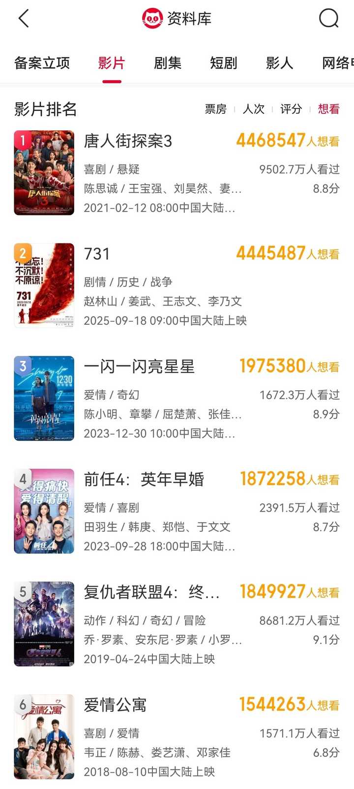 太慢了,按现在这个速度到时候连爆死的机会都没有了,因为压根不能算爆。 四百多万想看,排行仅次于唐探三。 |