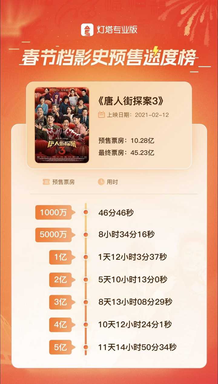 但人唐探三的预售曲线是咋样的,开预售一小时破一千万,1天就一亿了。 |