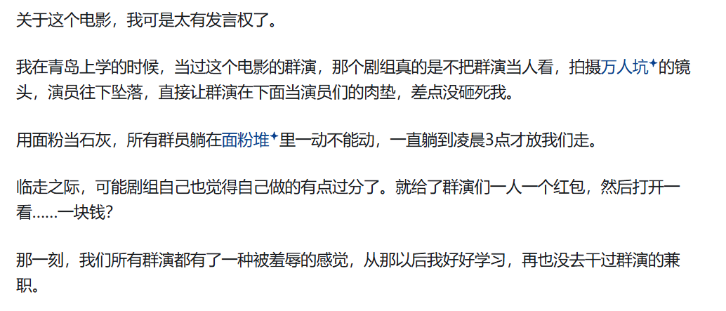 恐怖片这么整也还说得过去,可你这是拍《731》。 这是人类历史上最黑暗的一个角落,是实打实的反人类罪,不是靠镜头“堆恶心”就能让人铭记的。 我想起《南京照相馆》那部片,全片几乎没给鬼子正面施暴的画面,但看完你会从头凉到脚。 风华疯了那一瞬间、女主坐在窗台那个镜头,胜过任何血浆。 而赵林山显然没学到这种克制,他只学到了“怎么刺激眼球”。 而且剧组问题也很大。 |