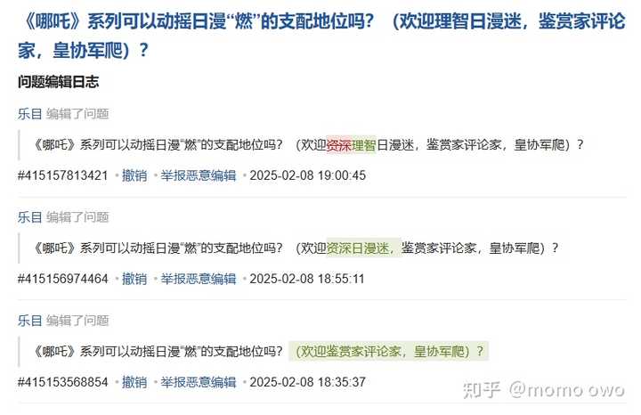 提问者已经给问题加上了“(欢迎理智日漫迷,鉴赏家评论家,皇协军爬)”字样。 人家早已经把答案写在问题里边了,摆明了就是想来知乎举办命题作文大赛,让大家对国产动画一通吹吹夸夸,再恶狠狠地诅咒一下日本动漫,指出其早已日薄西山,全面被国产动画按在地上打,国产动画已经取得全面胜利的“事实”。结果可倒好,你们一通阴阳怪气下来,把人家原定的赢趴计划砸成了蜂窝煤。 不过我还是要指出,你们说不服题主的,他提的问题,他是主场,不管怎么都能赢。你们赞同他,那正合他意;你们不赞同他,那就是他题目里说的,知乎已经让“皇协军”给占领了,你们这些不顺着他说吉祥话的都是“皇协军”,更说明他的正确了。 |