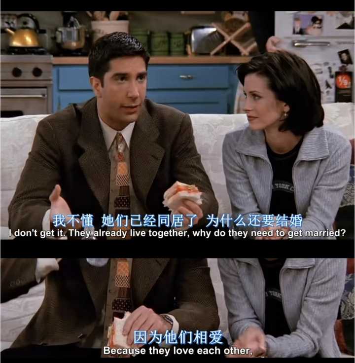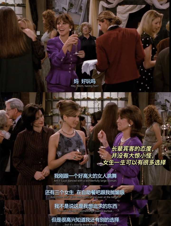 没有标签、脸谱化LGBT群体,我只看到了包容与朋友之间的友情和祝福。 这样一部影响力巨大的电视剧,敢于在一个比较主要的角色上安排同性恋的身份,并且作为影响主角关系的重要线索来描写,在当时不可不谓大胆之举。 制片人说道“当我们拍摄《 老友记》中女同性恋婚礼那一集时,[NBC]安排了 104 名接线员,因为他们担心会接到一百万个电话。可最后他们只接到了两个……”时代总是悄无声息地向前走。 |