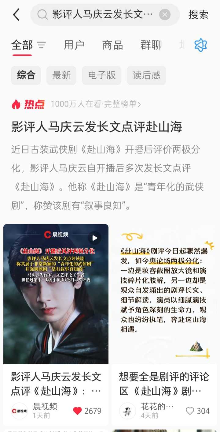 穿帮画面在以往的电视剧中也偶尔会出现,据说电视剧甄嬛传中也有不少穿帮画面,播出的时候一度引起观众进入找茬模式,但时至今日,没有人会否认甄嬛传是一部优质剧,用“据说”是因为看的时候我确实也没注意到。 我们当然应该提醒和要求制作方在制作作品的时候认真严谨,但是不提倡因为一个小的失误无限上升,并且强行和演员关联起来的这种行为。 再来看这个问题描述,主标题上使用了uc震惊体,如“再升级”“惊现”“被指”等一系列文字,不断强化问题,并且隐去主体突出客体,再点开问题描述,发现来自一篇百家号,这样的自媒体文字,通常带有源于利益关系的观点倾向,擅长使用春秋笔法引导读者,使读者也即大众顺着它的思路发散,在头脑里留下既有印象。所以对于这种文字,建议读者独立思考,像赴山海这样的电视剧,完全可以自己去看一看,这才是第一感受,而不是吸收二手的三手的评论,把别人的观点当成自己的观点。 |