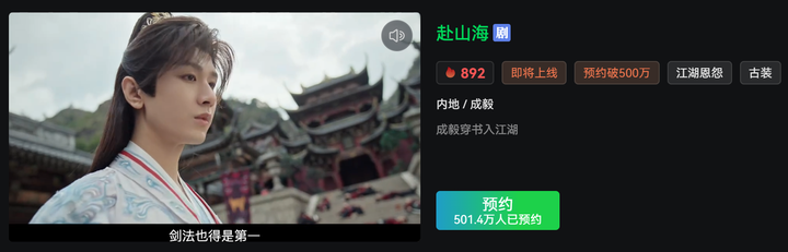 你以为《赴山海》只有画面穿帮这一个问题吗?这部剧,90分的期待,80分的开局,70分的观感,60分的细品,不及格的深扒。 在它未播时,因有成毅的号召力,《莲花楼》的珠玉在前(《赴山海》的编剧导演可都是照搬《莲花楼》的哦),以及温瑞安《神州奇侠》的故事底子,所以备受期待,随便提一句,就有人追问,到底什么时候能播。 开播前夕,赴山海在两个视频平台的预约量超过了千万。 |
