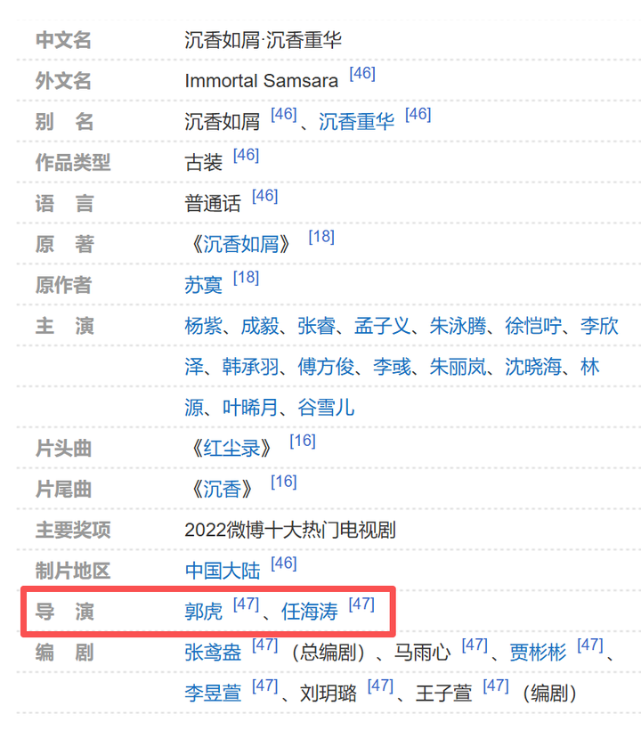 这么重的期待,《赴山海》却辜负了它,开播首日,就不断有差评出现,剧情、演员的表演、服化道等各个方面都遭到质疑,但万万想不到的是,它的正片中竟然还能出现“演员手拿剧本”这种低级的穿帮错误。 这种层次的制作水平,连讲究些的小短剧都不如。 为何明明从演员到编剧、导演都用了和《莲花楼》一样的配方,《赴山海》呈现出的效果却天差地别呢?请大家注意一个关键点:导演。 《莲花楼》是由郭虎、任海涛联合执导的,《赴山海》是由任海涛、林峰联合执导的,联合作品,谁的执导比重大,谁的排名在前,也就是说《莲花楼》以导演郭虎为核心,而《赴山海》以导演任海涛为核心。 郭虎和任海涛都师从林玉芬,他们早期的作品几乎都和林玉芬挂钩,这几年才开始独立拍自己的作品,除了《莲花楼》,大名鼎鼎的《沉香如屑》也是他们的合作成果。 |