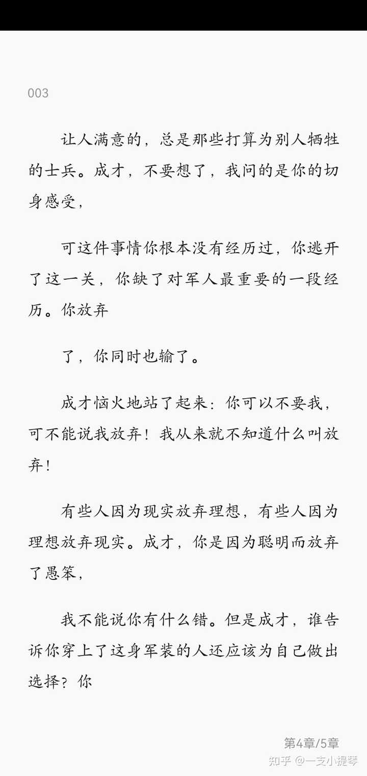 有个回答说,“撤退是正常的”,许三多刚去当兵的时候就说过,我为班长挡子弹。成才没有做好牺牲的准备,无论是为战友,还是为人民。这样的人你愿意把你的后背交给他吗,愿意就当我没问。 贴几张原著袁朗评价成才的片段 “谁告诉你穿上这身军装的人还应该为自己做出选择” “作为平民,你无可厚非,可作为军人,你脱离了这支队伍的轴心” |
