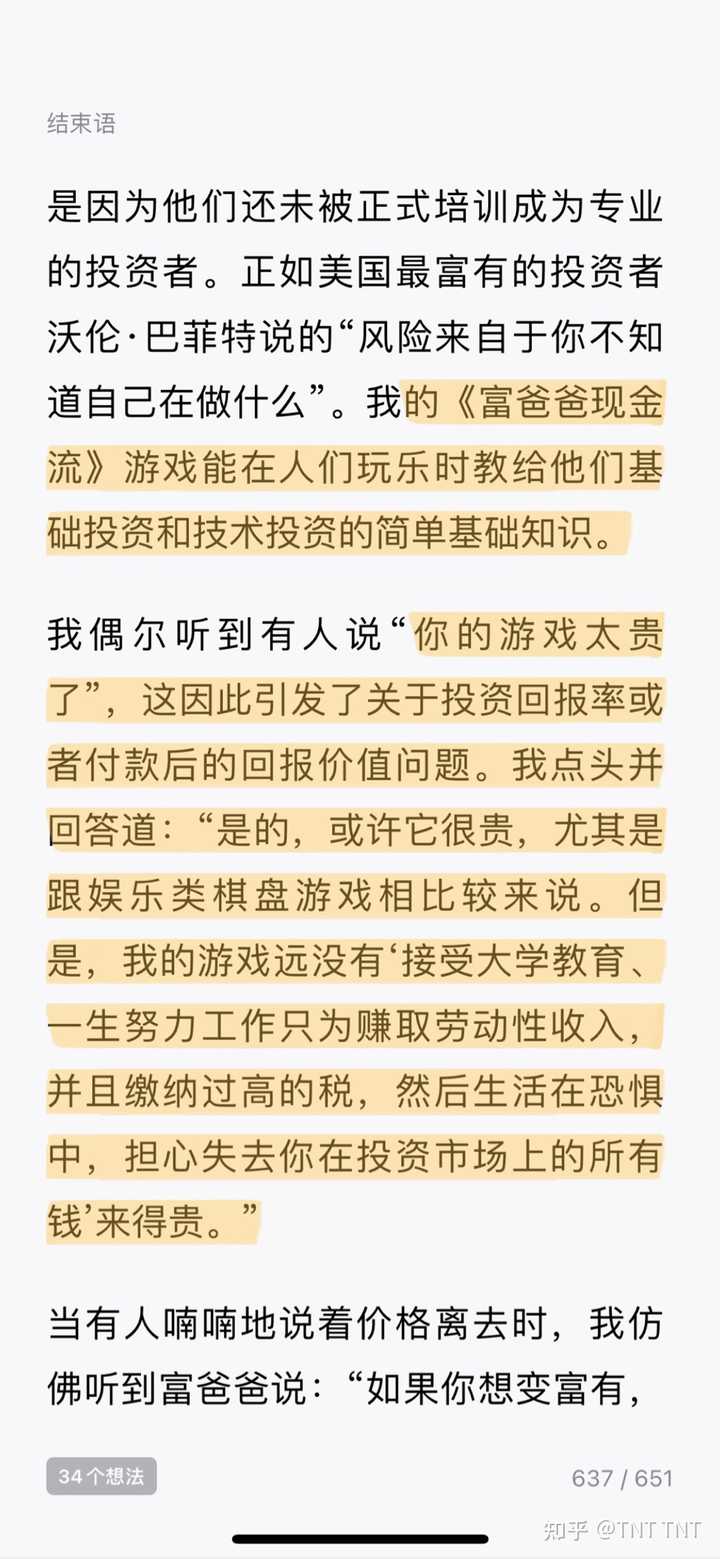 穷爸爸富爸爸教你的是屠龙术,一般人没能力也没机会用上,所以对大部分人来说确实是骗钱的,骗一本书的钱。他教的是财富玩法最顶级的认知,财富的最顶级玩法一定是土地,所有商业活动以及税收都是土地上完成的。他教的不只是教你致富,也告诉你了自古以来土地兼并的秘密—为什么资本家和地主越来越富有。想象一下,有两个地主,第一个地主,只在一块地里自己干活,最多雇佣一个人来帮忙,指望着用尽各种技术促使这块地产值最大,这像不像现在大部分员工和技术创业的小老板。第二个地主,用第一块地产出的粮食去购买第二块地,再用两块地产出的粮食去收购兼并第三块地,慢慢不经意间,已经成为了一方豪强(像不像万达,许家印?)。 更深刻来说,zf发行的货币只是债券,说难听点就是公分,和黄金脱钩以后更是如此。现代奴隶体系本质就是,zf不断让货币贬值,这种贬值就像古代奴隶主的鞭子一样促使着田地里奴隶(企业员工)不断干活。 大部分人以为致富的逻辑是踩那个时代的风口,然后创业发大财,但问题是你的本质还是在做贸易,只要做贸易你怎么没有输的那一天?只要风口一过,你的利润率不断靠近你的借贷利率,所以你的负债率不断上升,最终破产。本书告诉你致富的核心就是用发行的债券去不断购买你那个时代的生产资料,用生产资料带来的现金流再去买下一个生产资料,就像地主土地兼并一样,不断占据所有资源和节点,就像大富翁游戏一样。 |