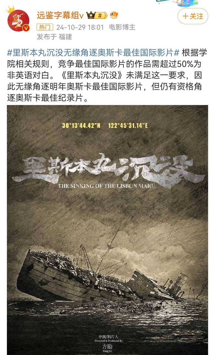 说回评奖吧 “最佳国际影片”这个奖项的选送规则是——由各国官方电影机构选送,每个国家只能选送一部影片。选送影片必须是非英语主要对白的电影,并且包含英文字幕。影片不需要在美国上映,但必须在选送国的十月之前上映。(去年我们报的《里斯本丸沉没》就未满足规则要求无缘进入下一环节) |