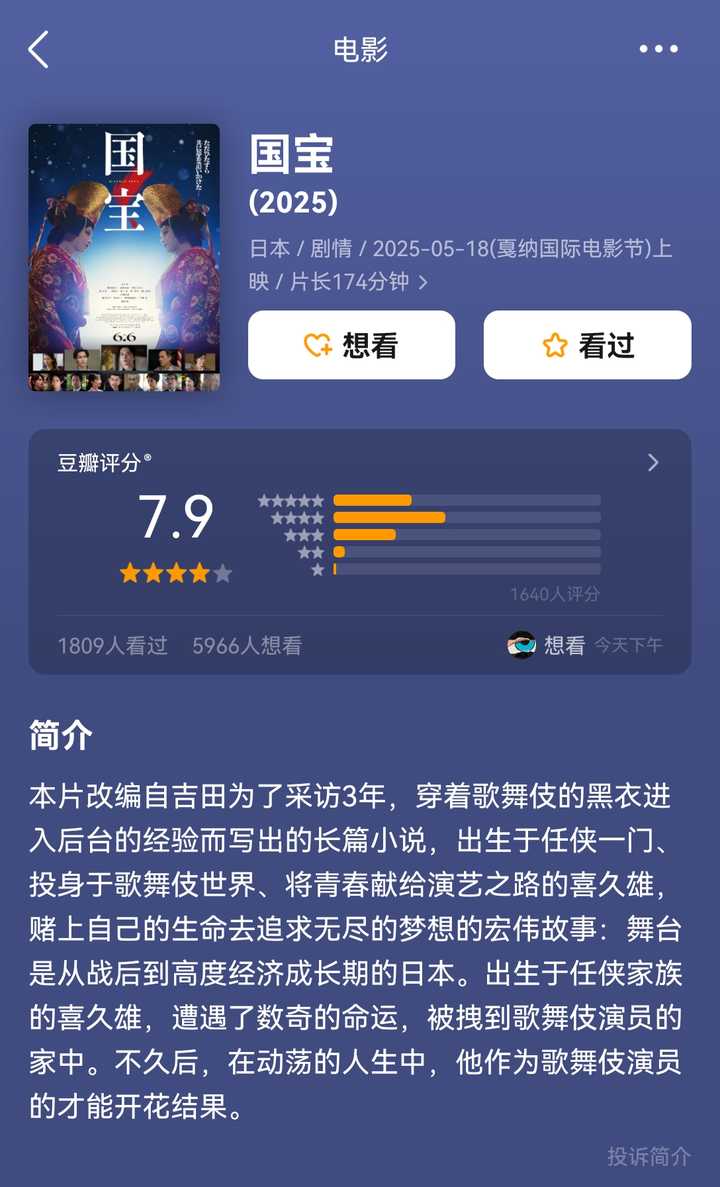 果然,《无可奈何》这回威尼斯电影节金狮奖赔率很高的,最后也没拿到奖。 所以你别说奥斯卡了,“工贼”是得不到那边工会认可的。 那么日本的《国宝》,还是有实力,之前入围过戛纳电影导演双周单元,其导演在东京国际电影节也拿下“黑泽明奖”(讲歌舞伎的,目前看评论反馈还是差《霸王别姬》一截)。 |