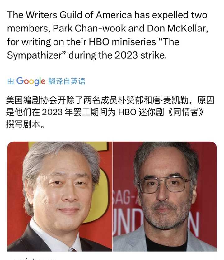 韩国朴赞郁《无可奈何》本来应该很热门,但他之前被工会除名(就是太卷了,美国编剧那些都在罢工休息他哐哐写东西)。 |