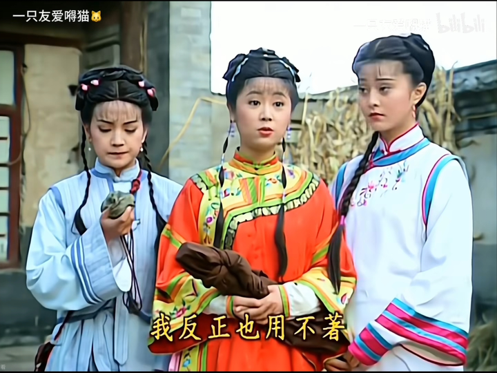 这是老版三人同框的图片,紫薇小燕子金锁三人衣服就分了三个等级,金锁衣服材质都是明显要比小燕子好的。 |