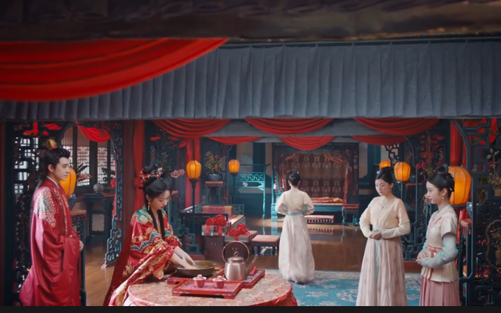 又比如《上错花轿嫁对郎》,老版是在扬州的何园内拍摄的。 男女主的新房其实面积不大,用纱和珠帘隔断成三部分,进门右边是看书写字,中间是榻,可以躺着也可以坐着聊天,左边是卧室和化妆台。 |