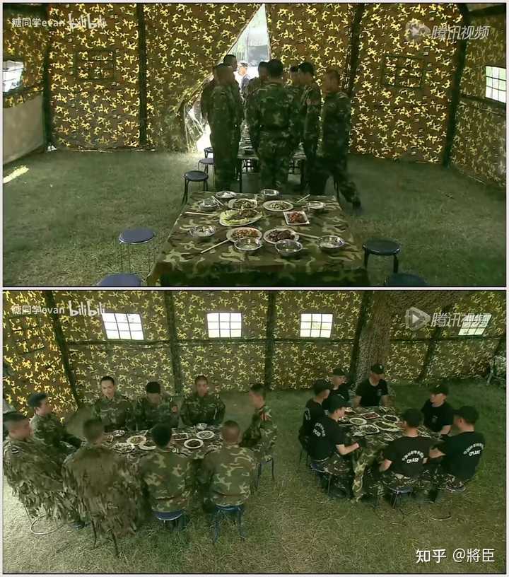 从截图中可以看见,包括六连长在内,每张桌子的菜是一样的。每桌是6个人、5盘菜,再搭配米饭、馒头。 部队里大部分都是二十来岁的青壮年,6个人才吃5盘菜,而且这份量也不多。 结果六连长又把他俩拉过去,于是那一桌子变成8个人了…… 啧,难怪高城不想去,8个人 才吃5盘菜。 六连的司务长 就没觉得脖子有点凉吗? |