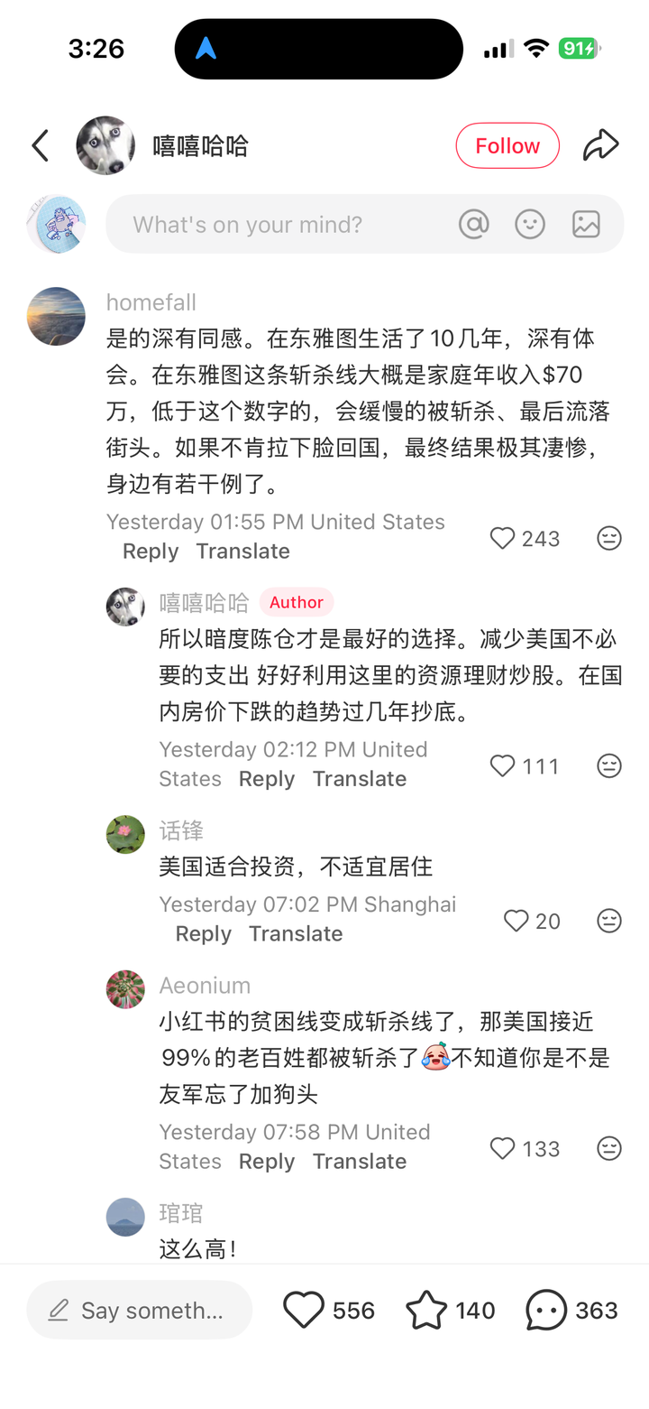 更新在最前面: 我现在感受到与评论区争论的压抑感在哪里了。这个问题对很多人而言或许只是一个键政问题,而我是从23年开始就追踪陈立人案不断给受害者辟谣跟进整理庭审记录的人,案件中很多提到的地点我甚至都无数次路过每次心情都十分沉重,这对我而言是一个无论物理还是心理距离都非常近的生活问题。 同样就【斩杀线】这个概念,大多数评论者可能都只在大洋的一侧生活,对岸无论是天堂还是水深火热都只是一个用于证明自己观点的键政素材;但对我而言,两侧都有我非常在乎的人在努力的生活和挣扎,所以我希望能在互联网上尽可能的结交任何愿意去真诚平和分享两地生活经历的人,这在一定程度上也能让我更容易去换位思考这些我在乎的人真实的生活处境。正如年初的小红书对账,我觉得很多帖子本身是离谱的,也在私信给一些美国IP卖惨老哥平替消费建议后被拉黑这件事中感到很痛苦,但我看的是更多的人愿意去跨越赛博国境线,真诚的交流日常生活中的快乐和烦恼,交流本身就是最大的价值。 键政小圈子你玩什么斩杀线或者基本盘的梗,虽然我不认同你这么做但始终觉得你开心就好。而他人的生活议题,尤其是真实的受害者(无论是于轩一还是更多被命运推到边缘的底层可怜人)相关话题持续的用轻佻的,娱乐化的游戏meme来消解背后沉重社会性议题与个人选择的严肃性,这种讨论真的让我极度的难受。 尤其是我突然想通为什么指责我一个坚持用基本盘这个词(意见领袖的最大公约数支持者受众画像)原义的人会被指责道德底线低。因为一个又一个更加刺激猎奇的键政故事下,人的感官阈值提升,已经容不下正常人有日常的平淡的生活叙事了,本能的觉得生活议题必须去为更加宏大的键政叙事让路,键政这种小众圈子定下的词语使用规则理所应当的让更大众的圈子去遵守。我想到 ?? @LtHarrySmith 曾经说过的,部分Z时代出生网友缺乏一种生活的真实感,连「人被杀就会死」这样沉重却又无可奈何的事他们也意识不到,一直在用很多游戏化的词汇比如「S3赛季」去描述期待中的战争。 我也是我觉得很难以理解的地方,我觉得我一直在讲的贫困陷阱/贫困螺旋是非常毛细血管式的侵入生活方方面面蚕食一个人向上突破自己的精气神的东西(而不是几个猎奇的规则怪谈故事),但评论中反复说那你说的不就和牢A一样吗?你说的不就是斩杀线吗?你叽里咕噜瓜说这么想证明美国赢结果我看了半天还是美国输啊?你是反驳型人格吗? 我实在看不出来我到底说的哪里和牢A一样了,不能说两种内容你都能找到支持你键政观点的点,两种内容就是一样的了,这和inm逻辑有什么区别?我始终在所有回答中不断强调的一件事就是生活体验是非常细碎感性的,这是一个不存在输赢的问题,尤其是对于我这样已经在多个地区,多个行业生活过,未来也始终不确定自己会选择走哪条路的人,每一种真实的生活体验分享对于我而言的意义都远超对错和输赢。很多事在我看来都非常沉重,所以我一次次在力所能及的范围内制止键政梗在生活议题的滥用和娱乐化。 有完没完了?本来不想再参与【斩杀线】这个让我极度生理不适的话题,因为这个词及其所难的庸俗化娱乐化单一化他人苦难用来满足看客的消费悲剧的猎奇心态,贫困螺旋/陷阱从来都不是一个具体的固定的数字。 最简单的反例就是我自己常说的我毕业前一直收入不到2000刀(暑期实习除外),远低于各类猎奇都市传说定下的斩杀线,我不但人没事没欠过钱,还能攒下来,父母连wire也不会用谈不上汇款支持,期间只回国过一次也是为了续签续完赶紧就走了。我这种情况的不敢说多,一抓也一大把了,拿斩杀线当固定死线去套所有人的情况那未免漏网之鱼也忒多了。 尤其在陈立人这种几乎什么苦都没吃过的人的问题下玩这种恶俗烂梗,更是体现了你根本不理解贫困陷阱是一种全社会系统性支持的匮乏造成的长期压力。举个简单的例子,同样2000刀我不谈恋爱不生娃不频繁旅游或者其他高消费,压根花不出去,但如果你出生在经济状况差/父母认知低的家庭,早婚早育早早放弃学业也是几乎注定的事,因为家庭琐事的缠扰你根本不可能有时间精力来算这个账去研究怎么开源节流,因为看不到职业发展的可能性以及需要应对这种虚无感,也容易沾染不良习惯,轻则沉迷短视频,重则毒品。同样的W2上的数字可能背后完全是不同的生存状态。 拿房贷压力去论证陈立人再怎么惨,你好歹查一下这房子甚至事发以后成为凶宅了,结果这凶宅的价格还比他俩当时(三四年前)买的时候高了一些,不能说湾区房产算什么优质投资但只要一卖还能小赚一笔的东西算什么压力?不能大赚就等于血亏了?还是说你心目中的【斩杀线】其实类似于小红书贫困线那样的,不能买palo alto的5b以上学区房,不能两孩上私校,没有赶上拆股前100刀单价的女大股票上车,不能在FANNG当上director带百人团队,就像不能上清华一样让曾博难受到觉得人生失败想自杀?那我建议你把这个词换成【自杀线】然后去找曾博关上门自己玩去,少来蹭真底层的困难。 |