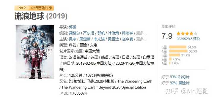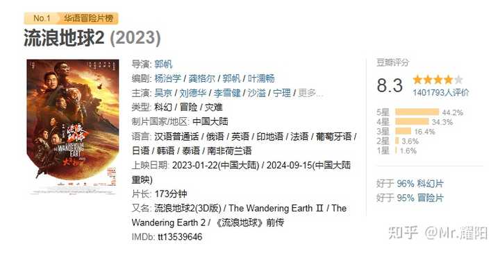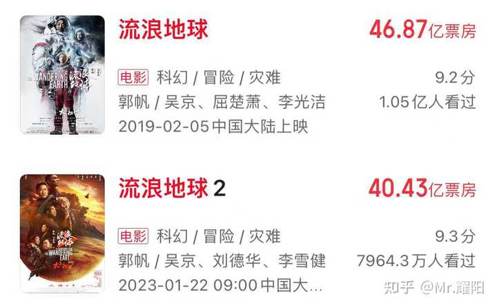 流浪地球系列毫无疑问是国产科幻电影的里程碑,在国内硬科幻领域并没有对手能与之交锋。 从第一部真正接轨国际,让我们国内终于有一部真正的硬科幻电影,被广大观众称为【成功踹开中国科幻电影的大门】。 |