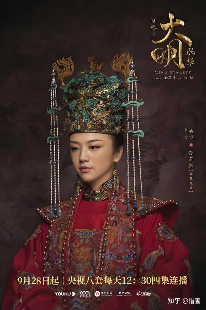 《女医·明妃传》汪皇后 朱祁钰的第一任皇后汪皇后,并不是像电视剧里面的那样由于德行有失被废,而是反对代宗废黜英宗的儿子朱见深的太子位而被废为庶人。 英宗复辟,也是因为感念在汪皇后曾阻拦代宗废掉自己的儿子,才免除汪皇后殉葬,使其安享晚年而终。 提名2:《大明风华》胡善祥 《大明风华》是由优酷、好酷影视、悦凯影视、北京文化、吉翔影坊出品,张挺执导,汤唯(饰孙皇后孙若微)、朱亚文、邓家佳(饰胡皇后胡善祥)、乔振宇领衔主演,吴越、梁冠华主演,张艺兴特别出演,俞灏明特别主演,王学圻友情出演的古装剧。 该剧原名《大明皇妃 孙若微传》,改编自莲静竹衣的小说《六朝纪事》,讲述明朝初年盛世背景下,孙若微历经五帝六朝的故事。 其核心故事改编自明朝著名的“靖难之役”。 |