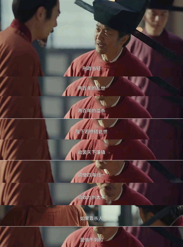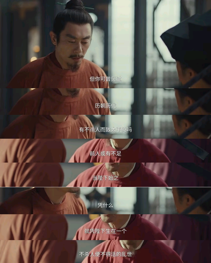 编剧该不会以为这样的文臣死谏很令大家感动吧。 文臣死谏,确实有风骨,历来是历史剧的高光,但关键得看他说了啥啊。 刚开头这一段说的还挺有道理,削藩不应分了亲疏远近,把前朝大臣与从龙之功的功臣区分对待,以郭威被屠杀全家168口之事而谋反告诫赵大不要滥杀,新朝刑政当轻,这没有问题。 |