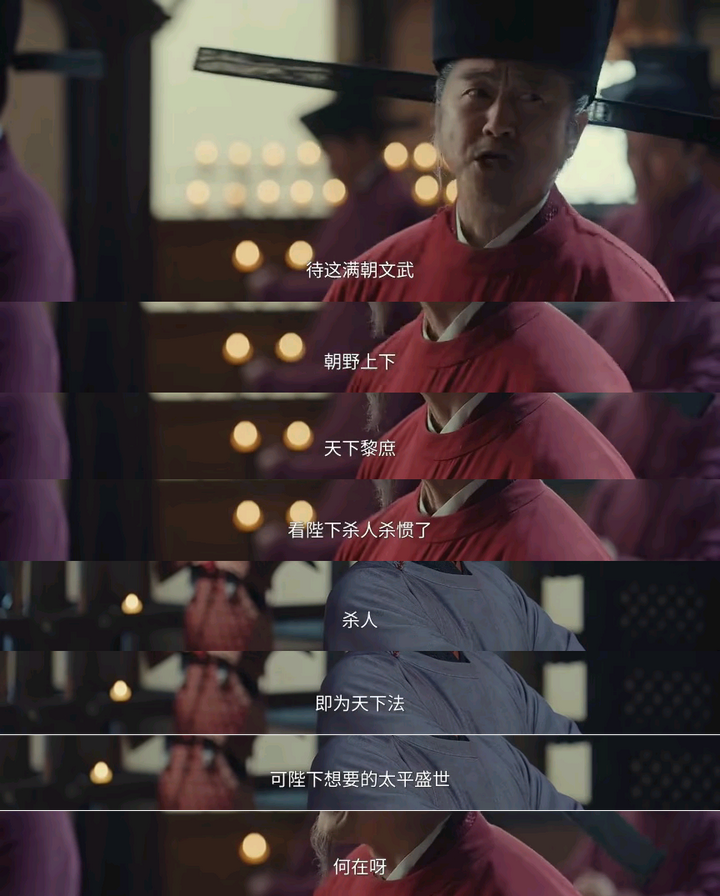 看不懂了,我之前以为编剧是赵大粉,所以前几集一直美化陈桥兵变,赋之以什么大义、天下太平什么玩意儿的,不仅自己点出军情之谎报,更是直接说到我黄袍加身不是为了尔等之富贵,而是为了以后不再发生兵强马壮者为天子的篡位之举,彻底封圣了。 现在登基后彻底啥也不是了,弄出来一个四十年不中进士脾气暴躁上朝吃黄豆零食摇头晃脑的小老头司马浦,事事都得听他的,不听他的他骂你还不够,最后他还一头创死给你看。 |