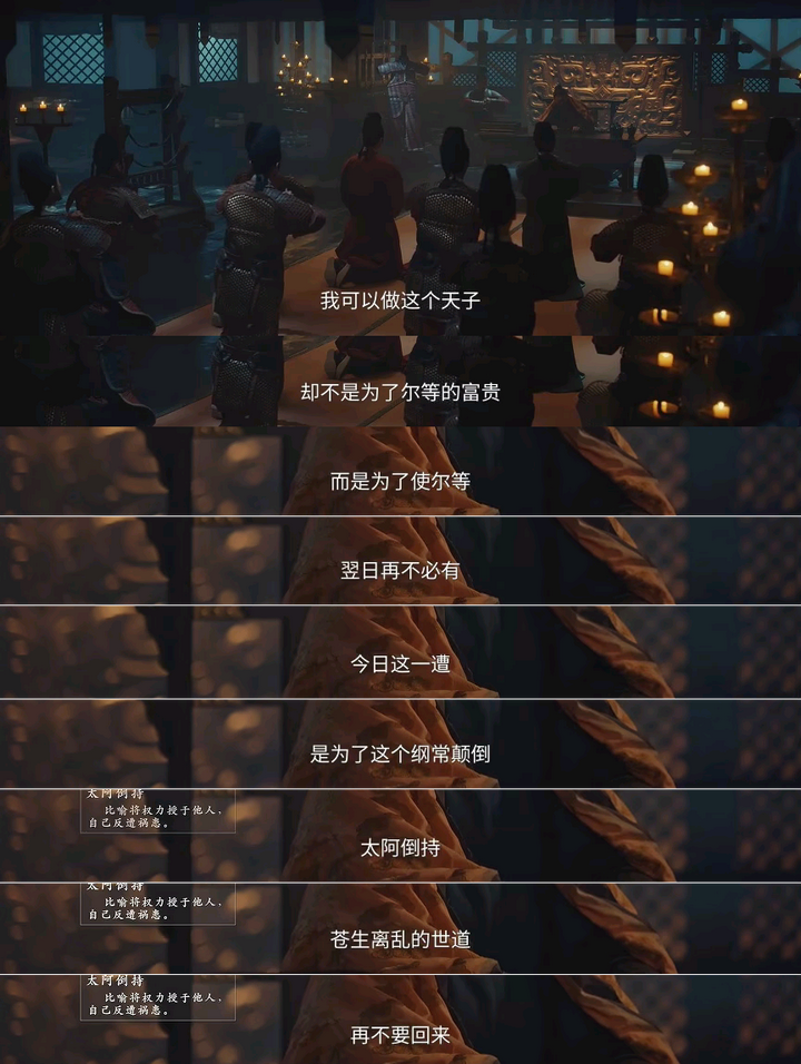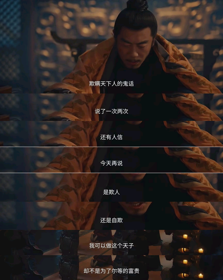 「欺瞒天下的鬼话,说了一次两次还有人信,今天再说,是欺人还是自欺?!」,单凭这个意识,编剧值得单加一个鸡腿。 现代史观就应该简简单单,清清楚楚。篡国无奈,主少国疑,天子兵强马壮者为之,诸如此类的话术,放在威权之下的古代,算个遮人耳目的话口也就算了。还拿到现代继续说事儿,就浅薄了。 哪来的那么多无奈,欲望最终战胜了仁义礼智信也就是了,历朝历代有哪个开国皇帝不是为了权利和自保去争的帝位?夺就夺,大大方方承认,别把自包装的多无辜多无奈就行,更别把「为天下苍生计」这顶帽子再加之现在的百姓就行。玄武门之变那熊样场面,也没见唐朝史官多么用心包装粉饰不是吗?唐宗宋祖,你赵家怎么跟人家相提并论。辩经的各位可千万别说什么当皇帝要扛着灭门之祸,古往今来,上面争权夺利打来打去,下面草头百姓被无辜牵涉进无妄之灾而灭门的可比他们天家多了去。给一堆皇帝洗什么地呢,大可不必。 其实还藏了一句,借吴越崔相公之口说的挺直白。 |