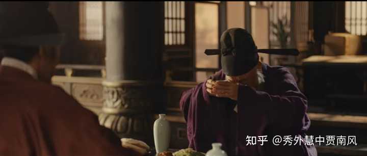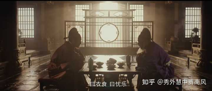 再让郭威求解疑何为儒,拉出全景,拍出两人相对而坐的状态,转为平等地位。注意光影变化,寓意儒学就是照亮剧中这个乱世的一道光。 |
