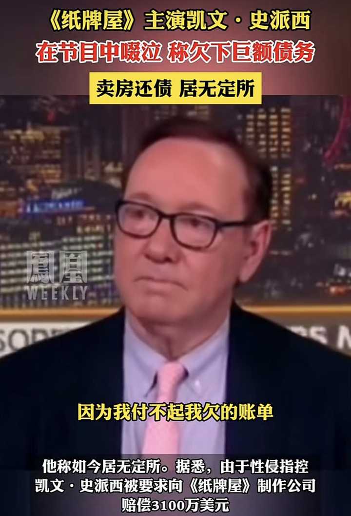[影视娱乐]《纸牌屋》男主凯文·史派西自曝欠债数百万美金,接受采访时失声痛哭,如何看待他的经历? |
