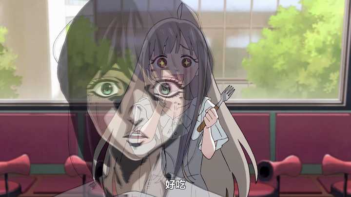 不需要台词,我们就知道场景的夸张变化是角色的心境体现。 |