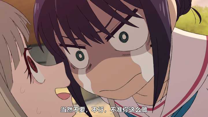 另一个比较显眼的优点是画面表现形式的丰富。 直白点说,就是表情包比较多。作品充分的利用了日本动画多年积累下的历史遗产,用特定的表情、动作、画风,将明确又固定的动画语言进行跨国界跨文化表达。 不需要台词,我们就知道这种流泪的情绪表达。 |