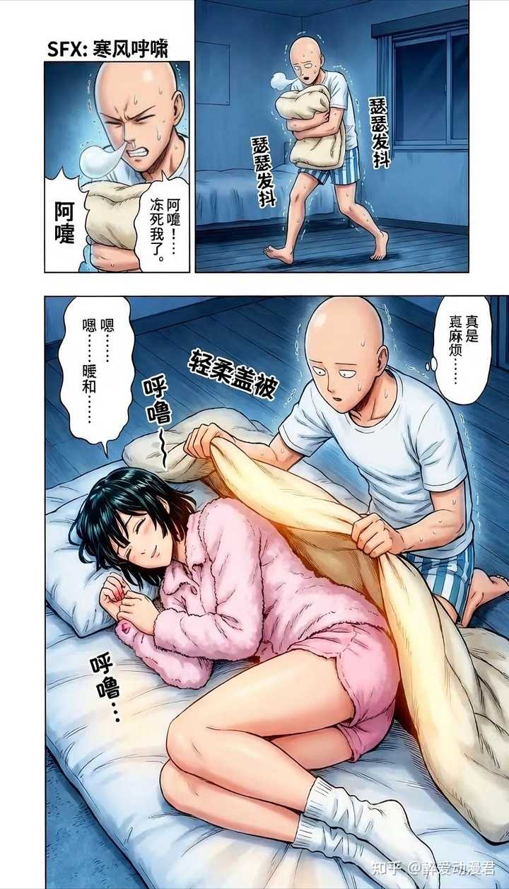所以没有办法,最后埼玉只能坐起来,准备给吹雪换自己的被子,让吹雪在自己的被子里面睡觉,而埼玉只能睡在外面。 |