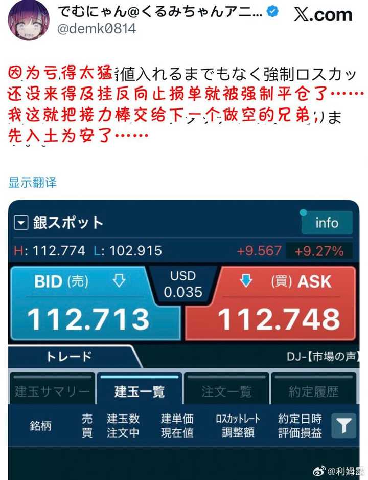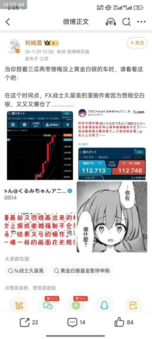 2026.1.27消息:《FX战士久留美》的作者でむにゃん因为做空白银而爆仓。 |
