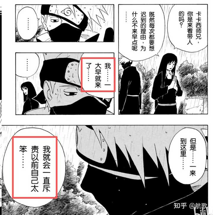 阿凯对三代目的担心以及卡卡西近乎崇拜的自信都说明了这一点。 但是天塌了,三代目没了。 卡卡西有多难过呢。 PTSD发作了。 追悼会都不去了,内心煎熬着接受着回忆的反复捶打。 追悼会当天,他是第一个到英雄碑的,却一直站到迟到。 |