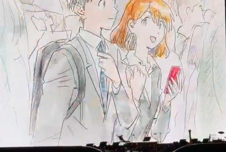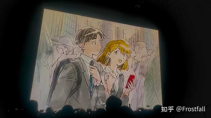 短片里明日香脑海里的婚后日常构图参考了唯和碇源堂生子,丽和渚薰逛街;原图丽渚薰头顶的孩子像极了小真嗣,而这里真嗣脑袋上的孩子像极了香香;车站处香香看到的美里和良治构图参考了终的丽和渚薰,车站薰丽的衣服和下图也是同样的衣服 |