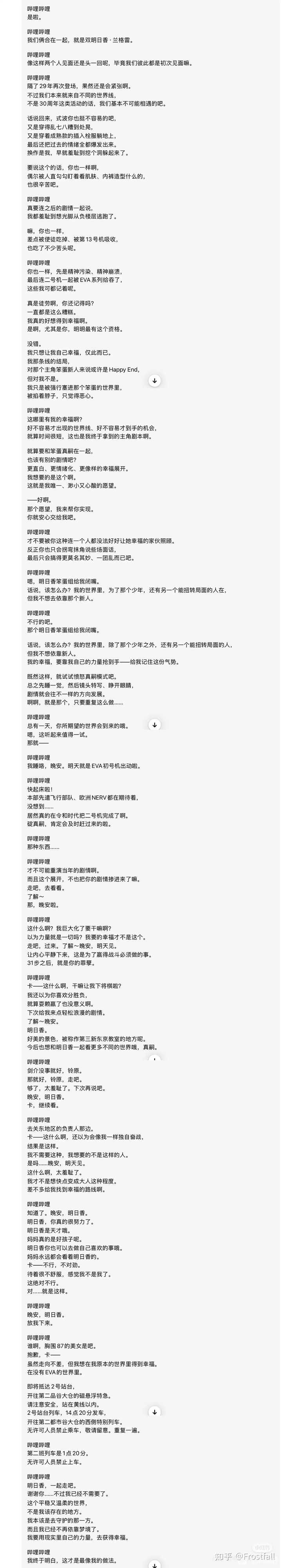 整部剧里。。 喊得最多的就是retake。。。 说明了什么? 建议你们去不完retake。。。 另外,区分asuka和asuka的最简单的就是画质。。 宽屏的是新剧场版asuka给TV版的asuka设定的结局。。 但是传统4比3甚至画质比较粗糙的事TV版asuka自己想要的结局。。 最后的版本中,是TV版asuka自己想要的结局。。 虽然asuka最后拒绝了一卡里。。 但是我觉得这个拒绝很asuka。。 毕竟asuka就是asuka啊。。 剧场版的asuka是被一卡里补完了。。 而剧场版的asuka和TV版asuka最大的区别就是。。 剧场版的asuka是一卡里在新世界李创造出来的(新剧场版)。。 而TV版的asuka是原版的asuka,拥有和一卡里一样的创造新世界的能力。。 因为EOE的结尾,asuka和一卡里都成神了。。 你可以理解TV版的asuka在用和我们一样的视角在观看新剧场版(观看一卡里创造的世界)。 最后想起的背景音乐是come on,sweet death 是EOE里面全部人被补完的时候的BGM。。 然后被剧场版的asuka打断了。。 后面就是经典的杀必死杀必死的BGM。。 然后背景动画全都是TV版asuka的历程。。 asuka说还是会继续驾驶EVA守护那个需要守护的世界。。 就说明了,TV版的asuka还是和EOE里一样,拒绝被补完的那个女人。。 因为一卡里在新剧场版,把新世界的EVA都消除了。。 而Asuka之所以还在旧世界是因为,她拒绝补完(拒绝了最后一幕车站下来的一卡里)。。 她接受一卡里就是retake的情节。 所以回到旧世界线,她一定会寻找到自己的幸福。 从短片可以看出来,eoe和新剧场版是一卡里创造的平行世界。。 EOE之后,一卡里和asuka两人应该都成了神。。 而一卡里自己创造了新剧场版试图改变一切。。 而asuka作为另外一个神,也创造了平行宇宙。。 这个奇妙梦境就是她自己创造的平行宇宙。。 看似剧场版的asuka在补完TV版的asuka。。 但是实际上是TV版的asuka在创造新的平行宇宙。。 而最终她决定回到的类似TV版的宇宙,属于自己的宇宙。 所以看完短片明白一个道理。 在asuka的世界,她是她自己世界的神。。 在一卡里的世界,他是他自己世界的神。。 两个人几乎不互相影响,属于平行宇宙。。 但是目前看来, 不确定是否只有他两有这个能力。。 还是所有人都有这个能力。。 所以,这次短剧还是追随了EVA终的那个理念。。 每个人都可以追随属于自己的幸福。 一卡里在一卡里的世界里,追寻到了没有EVA的幸福,也让每个人都幸福了。 asuka在asuka的世界里,拒绝被补完,希望继续驾驶EVA,用自己的实力追寻幸福。。 最后祝他两在各自的世界里都幸福。。 感觉,这剧情怎么有点像秒速五厘米的故事。。 |