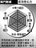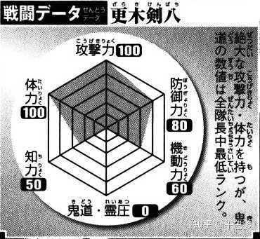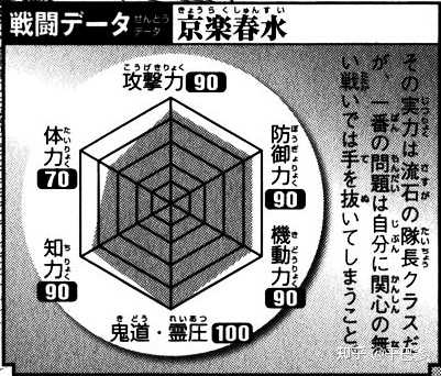 涅 涅队长战斗时基本就站着不动,因此速度和体力我只给了50和60的评分,智力100没啥好说的,作为发明家鬼道自然也是拿手好戏,因此灵压/鬼道给了90的评分,涅也属于数据不能完全体现实力的人物 |