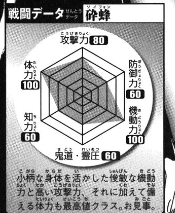碎蜂 卍解扔导弹的攻击力还是有的,且毕竟是隐秘机动队队长,速度还是可以给到90的,除此之外都很一般,总和435,垫底水平 |