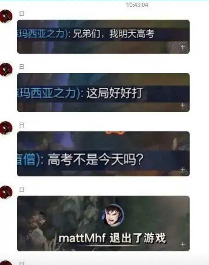 我高中的时候经常翘课去网吧上网,但是高考我还是重视(相对)的。 考试的两天都没上网,憋坏了,考完迫不及待打开QQ, 结果一堆消息滴滴滴滴响个没完,点开发现在高考第一天的上午,一个经常跟我一块上网的同学给我留言刷屏, 大意是问我装什么B,为什么不在线。 送礼物 还没有人送礼物,鼓励一下作者吧 |