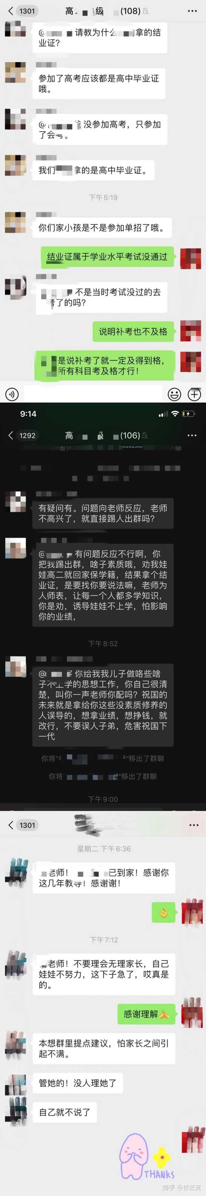 这张是被家长骂的截图,原因是他的孩子参加高中学业水平考试没考过,多次补考也没考过,只能拿到结业证,拿不到bi业证。 |