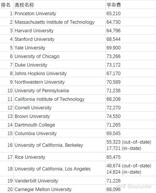 所以呢,评论里有人说学讲师打野也就不奇怪了吧…,好好的留学让你干成了“洋插队”,也是一绝啊,您这不是给我的论点提供弹药嘛… 犟者还真是多…… 其实我这里还没说到题主最主要的问题,就是偷换概念,把全美最便宜的公立高校拿出来证明“美国大学生没有学贷压力”。多的不说,我们就用美国人自己搞的USnews ranking吧,美国高校Top20是这样的: |