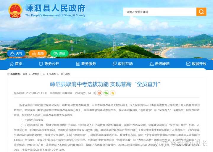 [教育信息]浙江一县取消中考选拔功能,实现全员直升,其主要政策考量是什么?这会成为普遍现象吗? |
