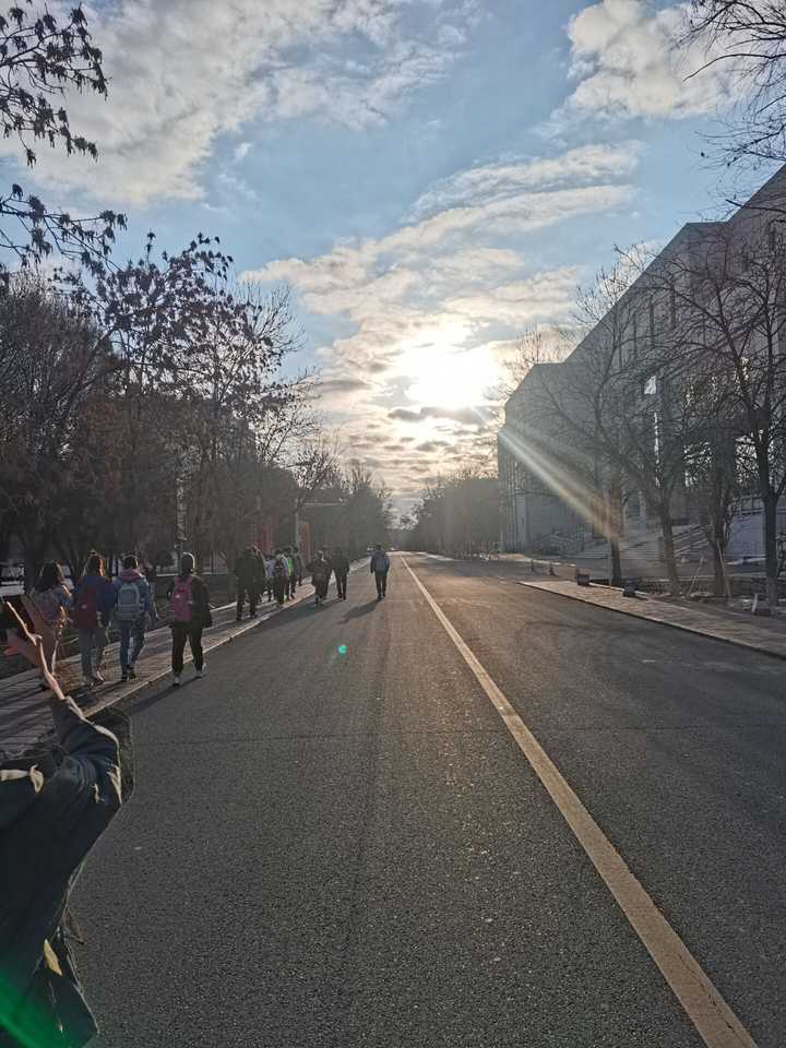 后来才了解到了新疆普遍都是春季和秋季几乎很短,只有十几天,然后冬天夏天特别长,知道后有些许崩溃呀 害,习惯就好,穿棉服也挺好 回来后出去玩儿了一次,没请假从中区小北门儿光明正大出去的 |