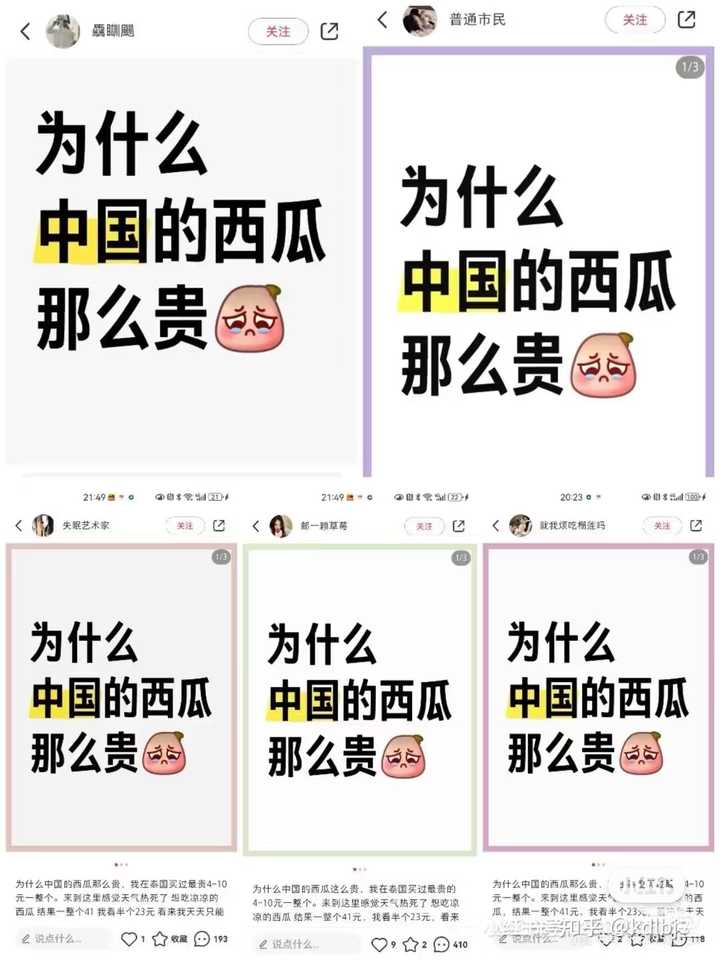 有点忘了什么时候刷到的了。。。。大概是西瓜从5块降价到3块左右的时候集中刷到的帖子,就很魔幻。 感觉好像有季差一样 |
