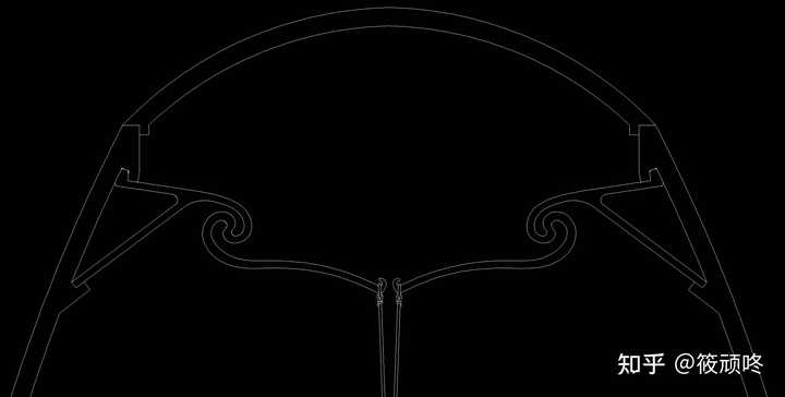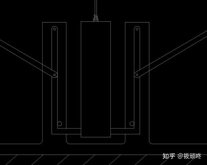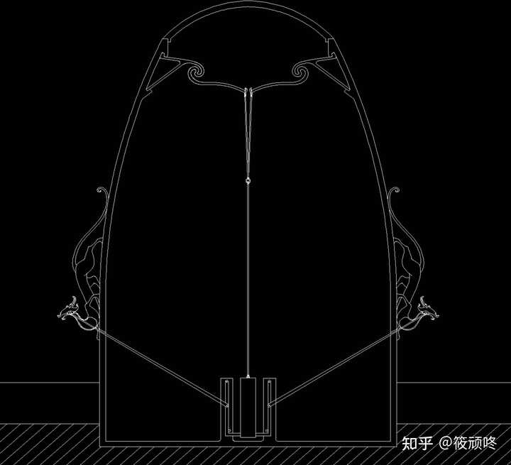 采用鱼竿(悬臂梁)悬吊法 昨天写完后我想了想感觉都柱的上部最好采用“鱼竿”悬吊的方式。鱼竿最好有很强的弹性,这样可以尽可能减小绳子对都柱的影响。 最好的方式就是弹簧,可中国古代没有。因此我想出了上面这种“回纹”的方式,这种方式也符合古代的工艺。这是一种铁材质的可拆卸的弹力挂钩,共四个。合力悬吊都柱。 |