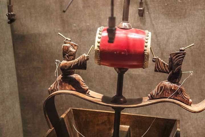 直到北宋时期的燕肃、吴德仁等人多次尝试才再次复原。西方直到16世纪才掌握差动齿轮技术,比张衡晚了1500年。 记里鼓车,这个《晋书·舆服志》中有记载 是张衡发明的“古代计程车”。 分上下两层,各有一个木人,上层挂锣,下层置鼓。车子每行走一里,下层的木人敲鼓一下;每行走十里,上层敲锣一下。 |