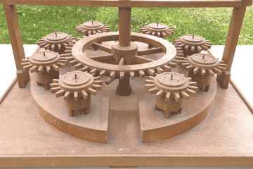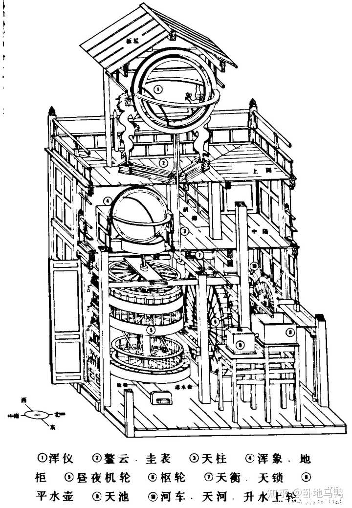 龙骨水车结构图 发明亚洲范围内首次运用曲柄摇杆结构、可节省上百名人力的水力鼓风机(公元前2世纪,杜诗水排,插图见下文) 发明全球最早的曲柄连杆机械,用于清除谷物中的秕糠(公元前3世纪,扇车,插图见下文) 发明全球最早的冶钢高炉,容积超50立方米,已完全具备现代高炉的“炉喉—炉身—炉腰—炉腹—炉缸”五种功能分区(公元前2世纪,古荥冶铁遗址),也是近代高炉的直接鼻祖(见下文) 开创全球最早的生铁冶铸技术(公元前8世纪,曲村天马遗址) 发明全球最早的多管条播机,可完全依靠畜力,同时完成开沟、播种、覆土三项工作,极大节省人力并提高播种效率(公元前2世纪,耧车) 发明全球最早的踏板织机,结构精密,将纺织效率提升至手工纺织的10倍以上(公元前5世纪,贵溪岩墓,斜织机) 发明全球最早的联动弩机,结构极为精密,并带有最早的瞄准标尺结构(公元前4世纪,鲁国故城遗址) 发明全球最早的程序化纺织机械(公元前2世纪,老官山汉墓,提花机)其本体有84个综片,编织前先将一万多根丝线从综片的不同位置穿过,就能通过线制花本贮存提花程序 ,相当于预制绘图。 整件织物的花纹被区分为经线与纬线,用衢线牵引经丝,让两个方向的线按预设顺序排列,就可组合织出足足数百种复杂纹样。 发明全球最早的锚状檎纵器和水力天文钟,集天体观测、星象演示与定时报时功能于一体,附设杠杆装置、齿轮组和链传动装置,每日报时误差仅10秒以内(公元11世纪,水运仪象台) 发明全球最早的活塞机械风箱(公元12世纪,榆林窟壁画) 发明全球最早的冲击式顿钻(公元11世纪,自贡盐场,卓筒井)运用该技术于1835年凿成的燊海井深度达1001.42米,是当时的世界钻井深度纪录。 发明同时期全球效率最高的大型水力纺织机械,普通的麻纺车仅有1-5枚锭子,而该机械本体足足有32枚锭子,可日产数百斤麻纱布匹(公元13世纪,水转大纺车) 发明全球最早的压发式地雷,首创钢轮发火装置,当敌人踩踏引线或机索时,带动钢轮与火石摩擦发火,从而引爆地雷(公元15世纪,火龙经) 同时,全球最早的绊发、拉发、压发、定时引信?等地雷样式皆为中国最早首创,具体可自行检索。 发明全球最早的定时式水雷,使用?线香?作为定时装置,通过调节香的长度控制引爆时间。通过配重使其半沉半浮,顺流漂流至敌舰下方后定时引爆(公元16世纪,水底龙王炮) 这还只是单纯列举了宏观层面的开创性技术,除此之外,古代中国的其他机械长这样: |
