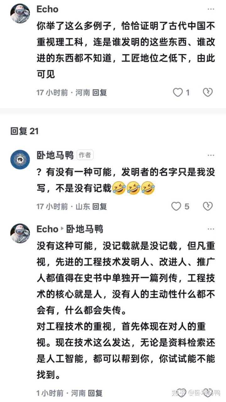 马钧:是的孩子们,龙骨水车与我无关,我没有被记载,也绝对没有因为手艺精湛而从一介布衣高升到曹魏的给事中 杜诗:是的孩子们,水排不是我发明的,我也没有被记载,也绝对没有因为发明水排而被当地百姓尊为“杜母” 蒯祥:是的孩子们,古代不重视工匠,我是凭空当的工部侍郎,绝对不是因为我出身普通木匠但技艺过人,被征召参加北京城的修建而脱颖而出 赵过、杜预、陈宝光、苏颂、王祯、毕昇、焦玉:是的孩子们,我们都没有记载,都是后人杜撰的。 @Echo 我再重申一遍,你不知道不代表没有。 送礼物 还没有人送礼物,鼓励一下作者吧 |