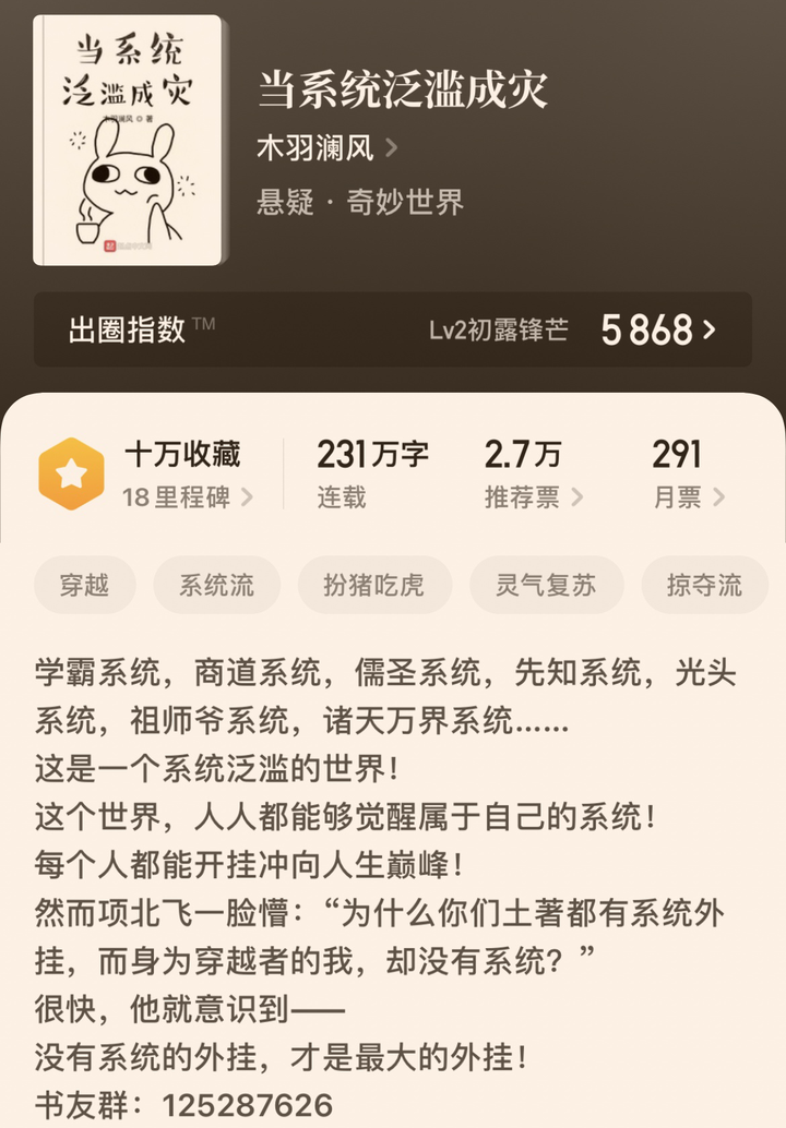 老书了,科学与魔法的结合。 13.《当系统泛滥成灾》 |