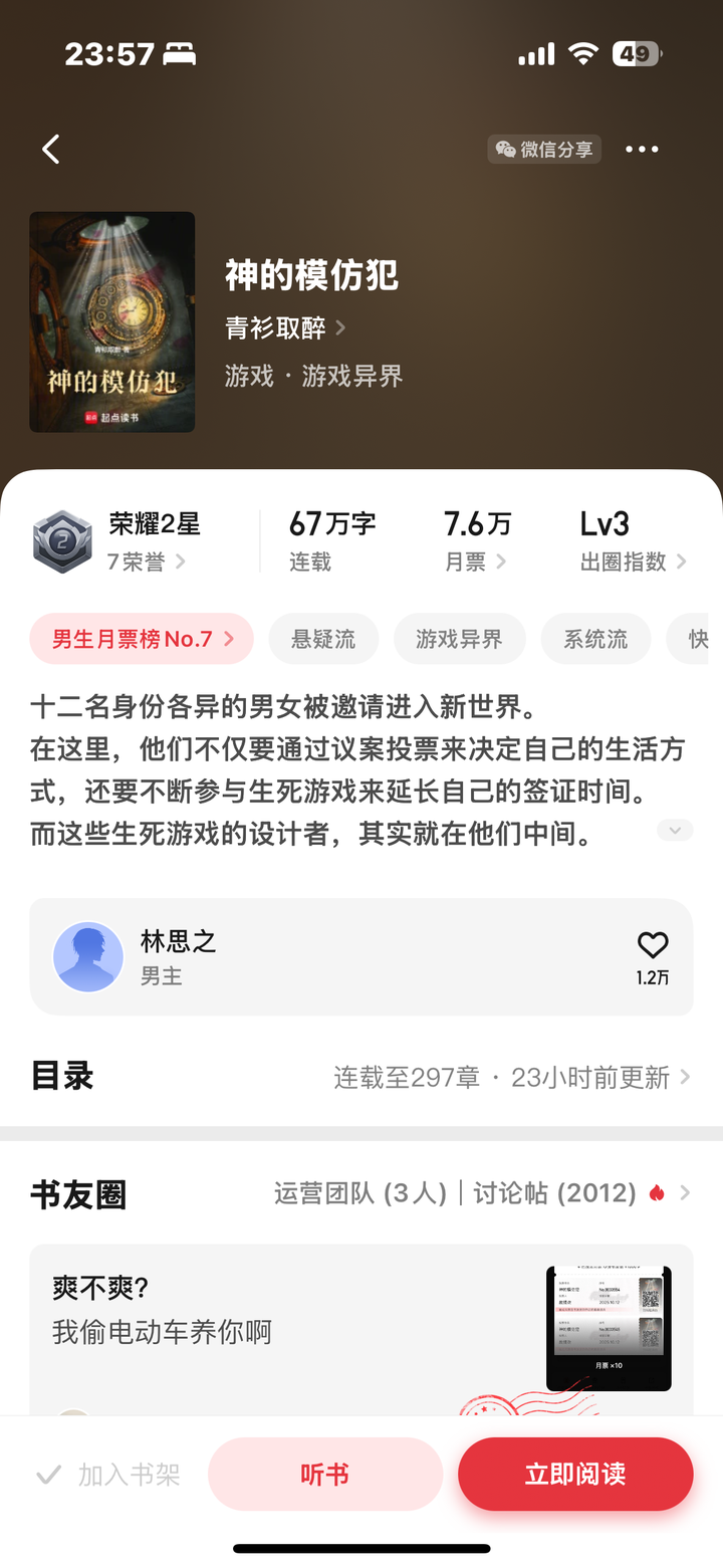2025年最新更新! +一本 《神的模仿者》,亏成首富的作者,设定真的非常精彩,有很多高级视角的社会认知……高智商又充满合理性,适合刚踏入社会的青年看 |