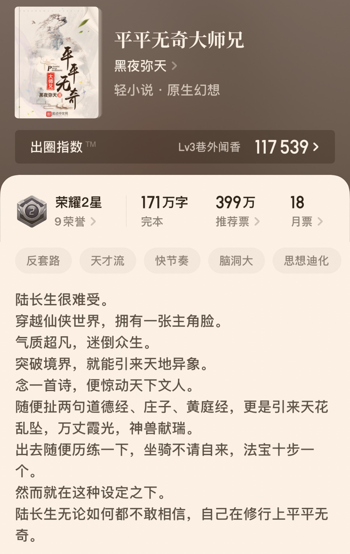 PS 没有女主没有女主!!当穿越者遇到异世界气运之子,遇到自带系统的主角会怎么样? 脑洞超大设定有趣!三观很正!强推!!! 15.《平平无奇大师兄》 |