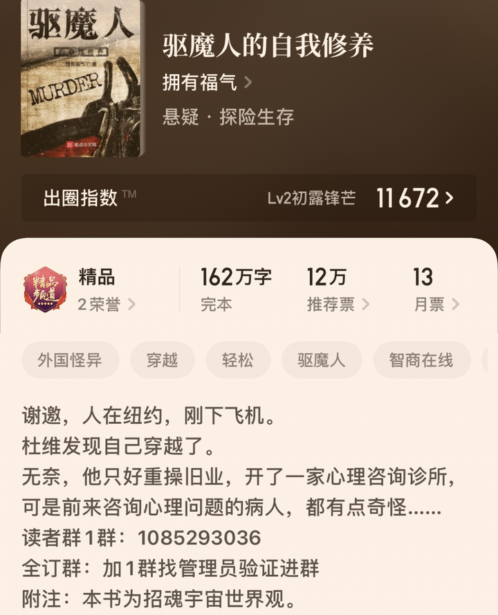肥瓜yyds !基金会背景的故事!主角性格非常吸睛非常疯狂 10.《驱魔人的自我修养》 |