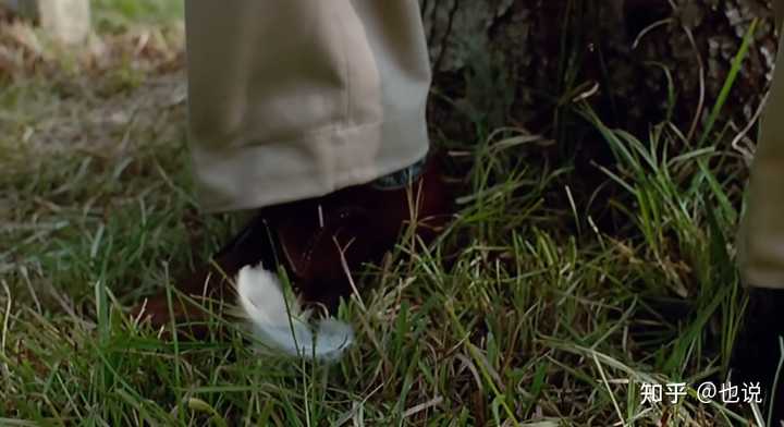 镜头摇下,曾经飞舞的羽毛此刻落在脚下,困囿于草丛。 |