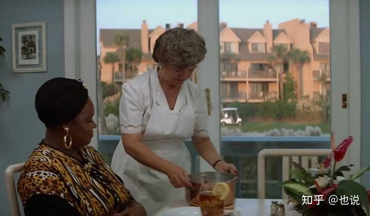 阿甘说中尉帮他买了家水果公司的股票 比如,他和中尉把自己的产业留给了黑人战友巴布一份。 他妈妈收到以后,雇了一个白人每天给她做虾汤吃。 看起来有种“放羊娃幻想富裕了,让地主老爷给自己放羊”的可笑感。 这就是导演故意用夸张的方式在说:“这部分情节是实际不会现实发生的。” |