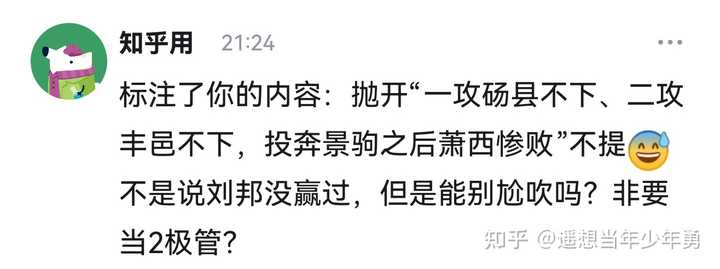 删了以为我就挂不了你? 还萧西惨败都出来了?? 司马夷表示刘邦是惨败,那我是什么? 当然你们信不信这群人连司马夷是谁都知不知道还好奇咋又冒出一个司马夷? |